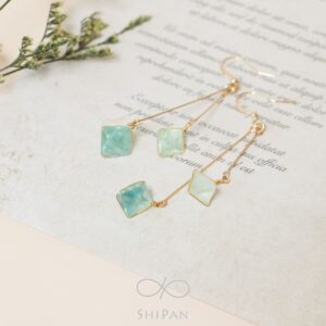 • 雙雙閃爍✧藍綠螢石耳勾耳夾垂墜式耳環耳飾