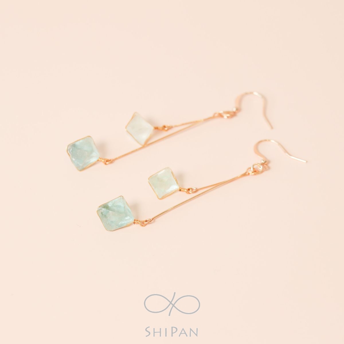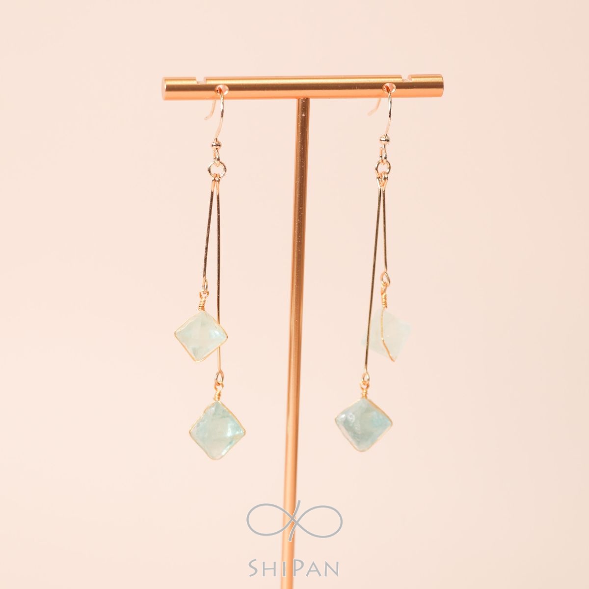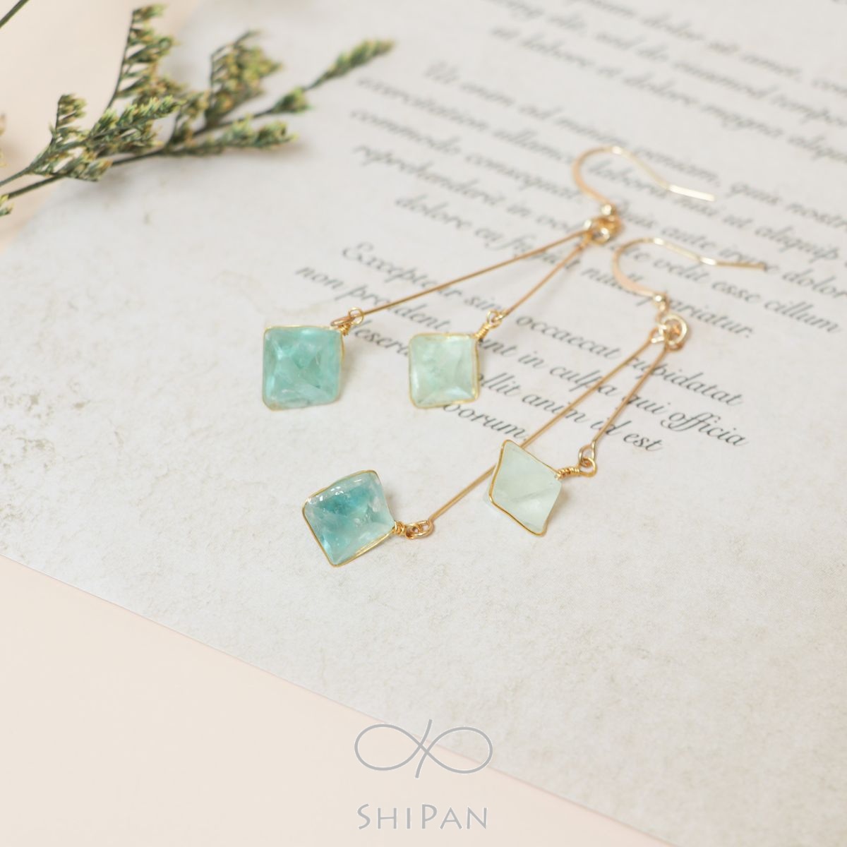 採用精選過的天然螢石原礦設計而成的垂墜長耳環,喜歡自然又療癒瑩石的你千萬不能錯過的一款!