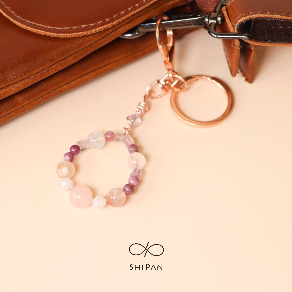 癒彩暖意✧螢石碧璽粉水晶櫻花瑪瑙紫水晶鑰匙圈吊飾
